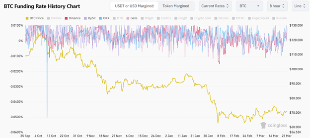 Perp funding rates at major centralized exchanges over the past 6 months. Source: Coinglass, Coinperps.