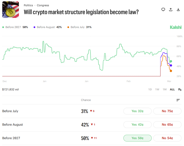 Expectations of the CLARITY Act becoming law. Source: Kalshi.